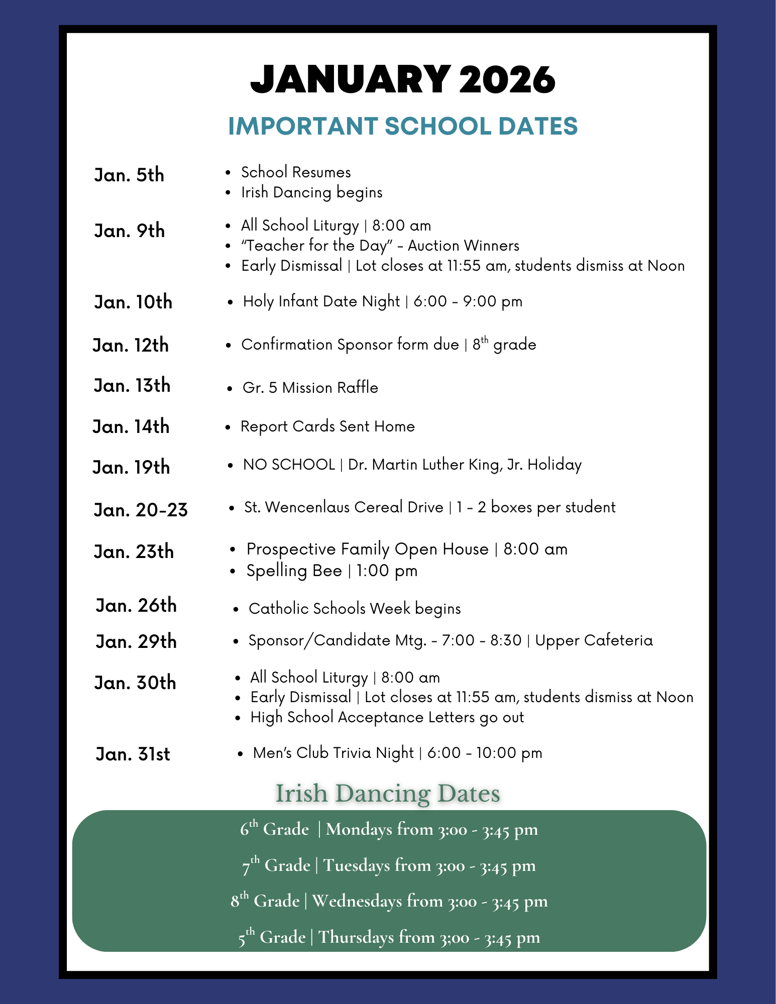 January Calendar of Events