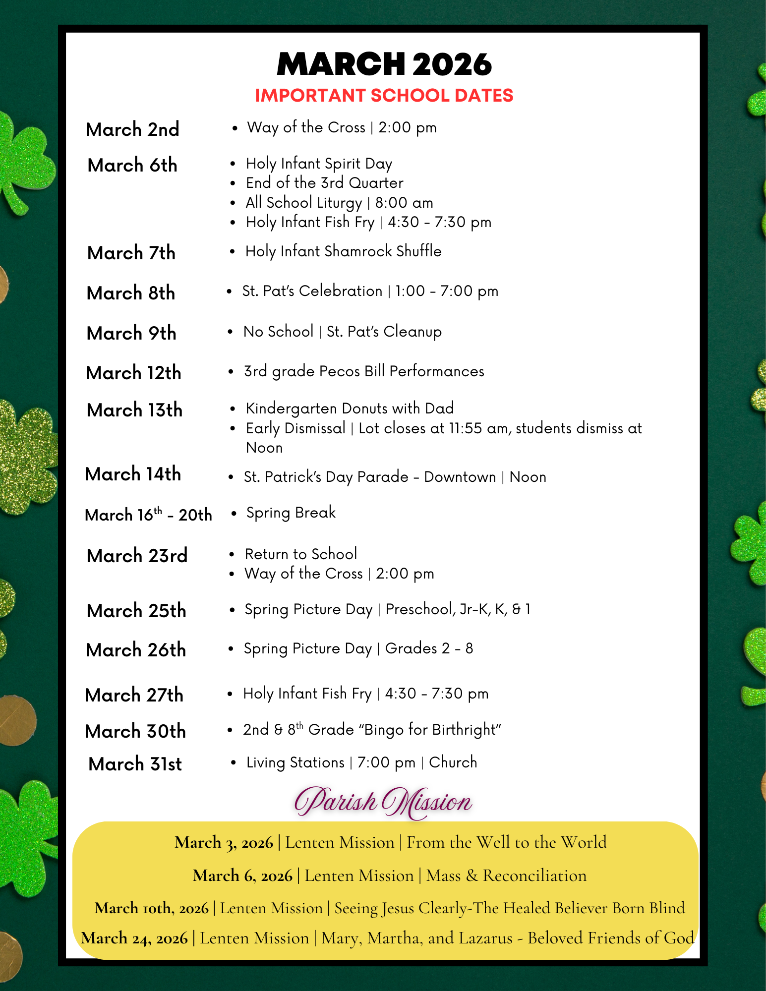 March Key Dates